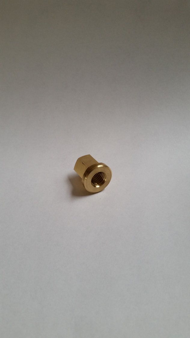 After many years racing Spec Miata myself and many other racers have had the dreaded down pipe nut seize. When this happens at the track, like when changing out a transmission, it can be a real pain. If you use a new nut from Mazda, every time, you may be spared this. The nut is non JIS as it is 14 mm hex with a 10 X 1.5 thread. It is Stainless steel (soft) and moly coated. The nut is short and the exposed thread makes it very difficult to remove and the exposed threads invite seizing, especially if used for racing or Turbo application. The fix is a 14mm Hex, 10 X 1.5mm Brass Flange Nut. The brass will not seize to the SS stud, the 14mm hex is small and the 19mm length covers the threads and make removal and install very easy. No more problems at the track, well worth it for anyone that removes these nuts often.