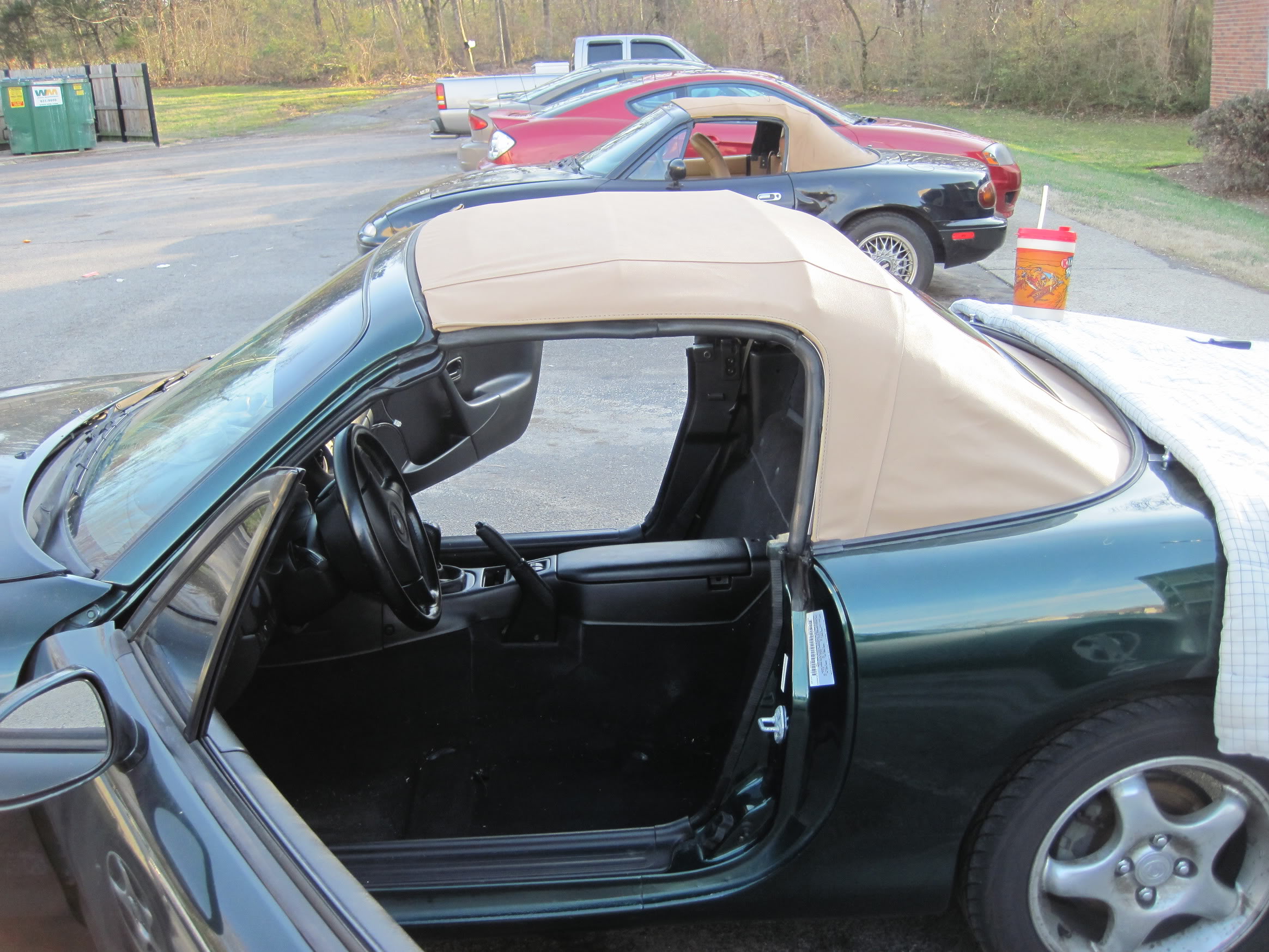 Flew down to southern Florida to pick this up for $3500 last January. Then I drove it down to Key West before returning to Nashville. https://www.miataforumz.com/attachme...ine=1312178268 http://i155.photobucket.com/albums/s...L/IMG_1034.jpg Attachment 7104 At a lookout on one of my favorite drives. Replaced the original wheels with some wheels off an STO. Attachment 7105 Attachment 7106 After installing the new Tan top with heated, zip out glass window. That's my black 92 in the background. Attachment 7107 After changing out the black cloth interior for tan leather. I got the entire tan interior (except for the dash) for $500. https://www.miataforumz.com/attachme...ine=1312178268 |