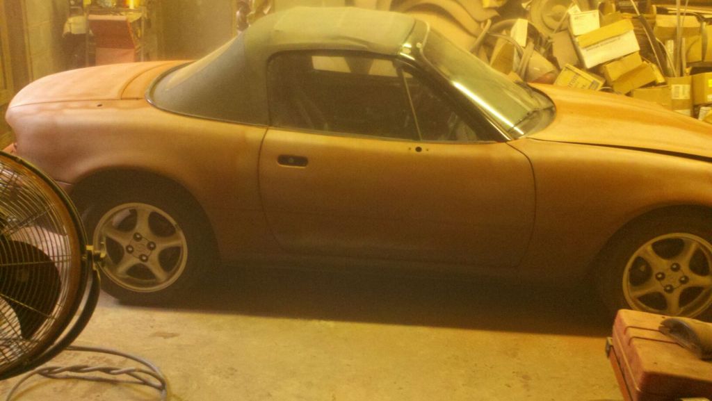 What's up guys? Names Adam, 20, work at the Georgia Kia plant. Anyway I've been crazy over Miatas since a kid and finally got my first car, an NA, at 17. Been through several visions of what I wanted it to be and finally really dove into a build about 6 months ago; since then me and my Dad have rebuilt the tired 1.8, had the trans rebuilt and are now close to finishing the bodywork with a custom color in mind. Just before bodywork began: