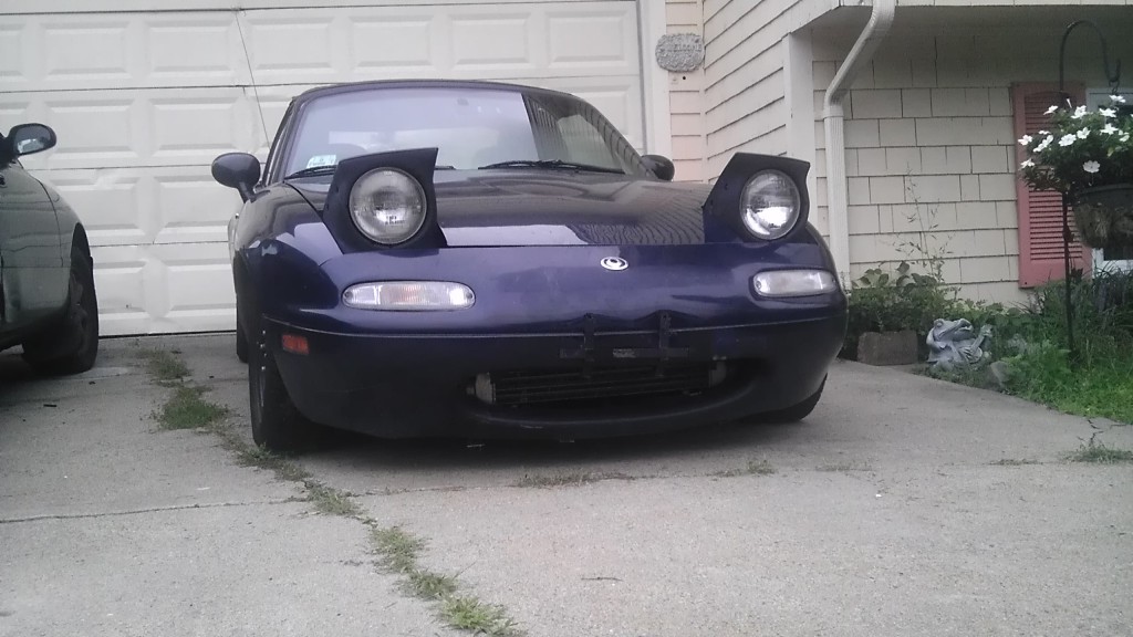 hey guys whats up names Andrew and i have a 97 mazda miata turbo. I got the car about a week ago for a 500 bucks with the turbo kit installed and koni struts and i believe tien springs. it is a work in progress it needs a ecu and also a headgasket. heres some pics of the miata to satisfy your curiousity.