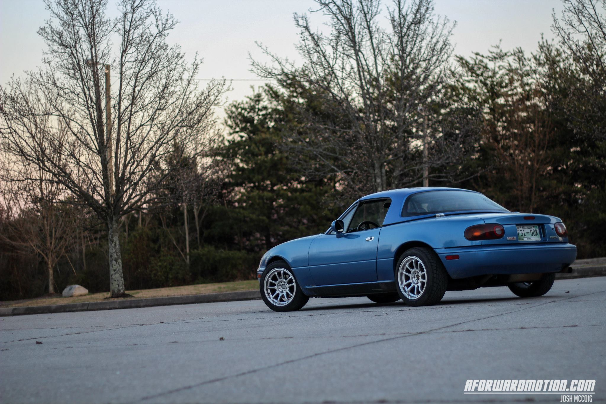 Well, my name is Josh. I am not new to Miatas but this is my first time having one. It's a 1994 Leguna Blue w/ Hard top. Modifications as of right now are Koni Orange Shocks, FM front sway, Hard Dog Fat Boy Roll Bar, and it currently has Falken Azenis on it.