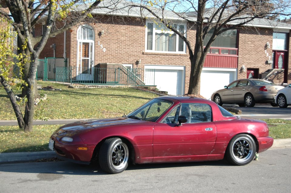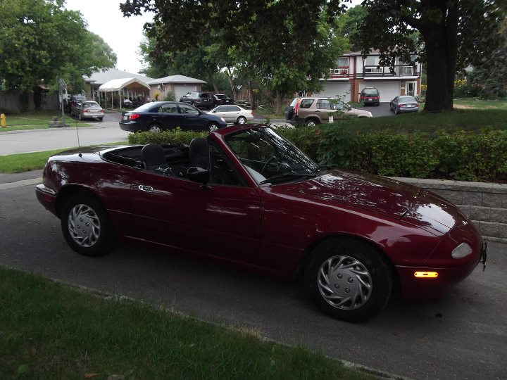 So I bought a '92 "Ruby Red" Miata on my 21st birthday, it was and still is, my first car! As my friends laughed away at me for purchasing a "girl's car", I couldn't help but to grin every time I hit the road, top down, music blasting and not a single care in the world (I miss the warm weather...)