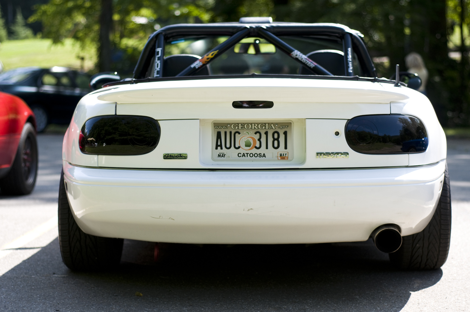 Hey guys my name is Robin Lewis and I live in Ringgolg Ga just outside Chattanooga Tn. I have a 90 white na with hardog dbl dig, 15x8 6uls (black), toyo proxis4, fm butterfly brace fm high flow cat and stainless magnaflow catback. I saw a picture of my car in the picture gallery miatas at the gap on here titled clean white na. My car is easy to spot its white and black.