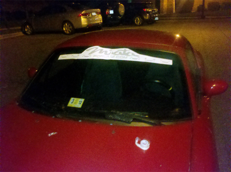 Hmmm don't like... I don't like the generic "Miata" logo in the first place so it was a loosing battle from the getgo. To have it plastered on my windshield... Nope.