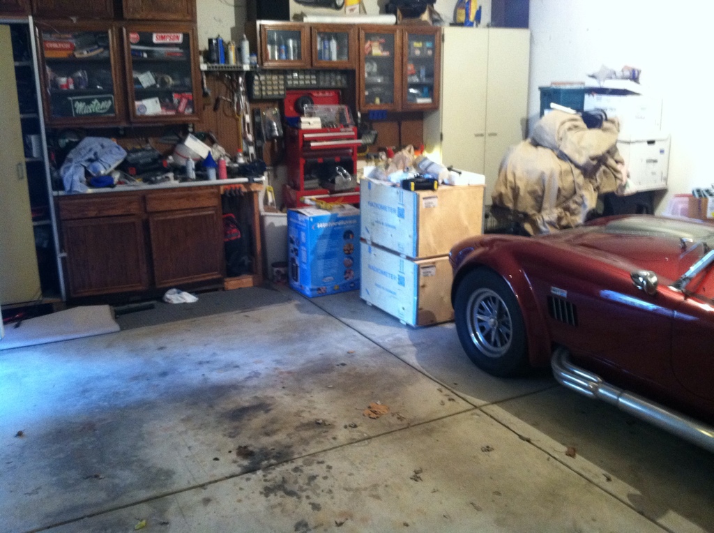 Single car garage, with two motorcycles, the miata, 3 bicycles, a large dog crate, 2.5 full sized tool boxes, drill press, compressor, and two big shelving units. Cramped, but I'd take it over the gravel driveway I used to have. |