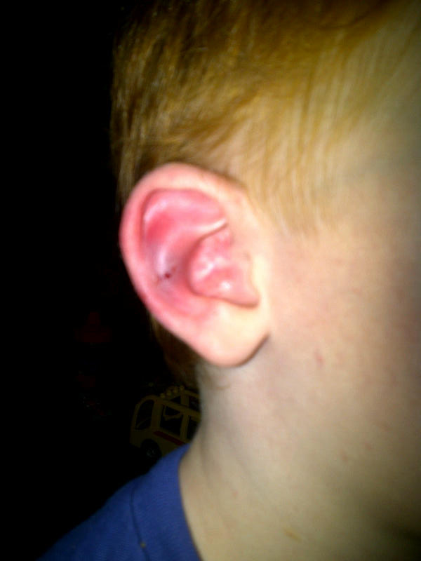 Nick sustained ear fail when landing on a drawer while shadowing mommy