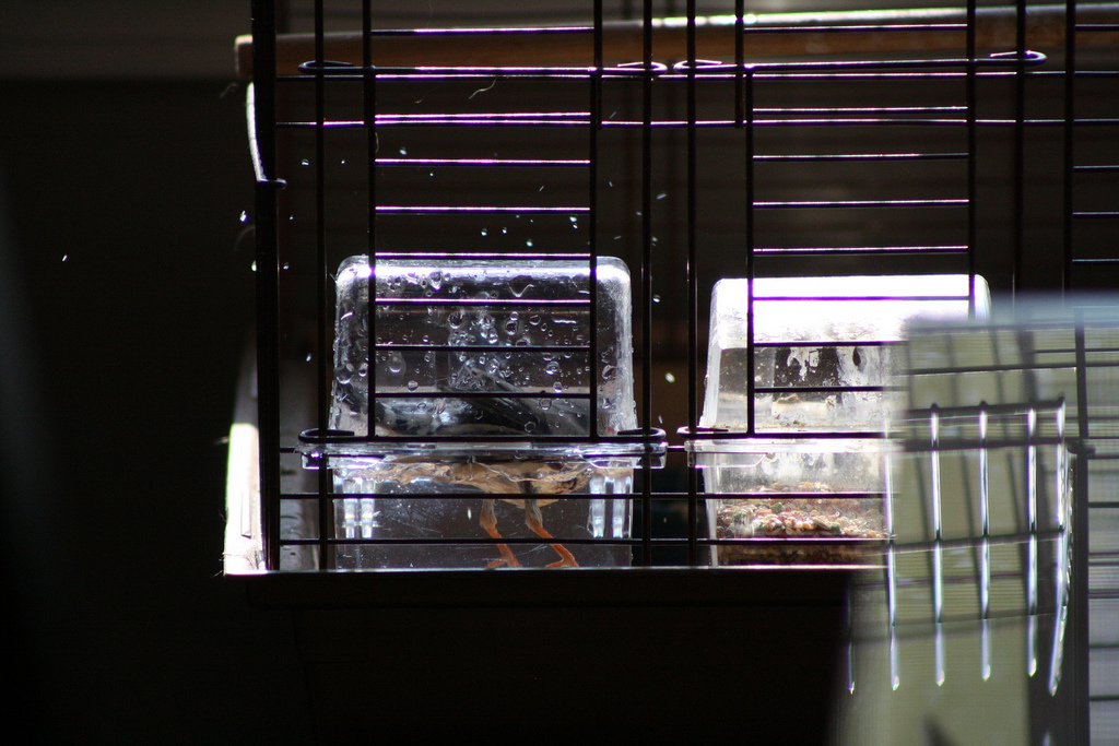 Bird bath! I like catching our little guy using his water bowl for a bathtub.