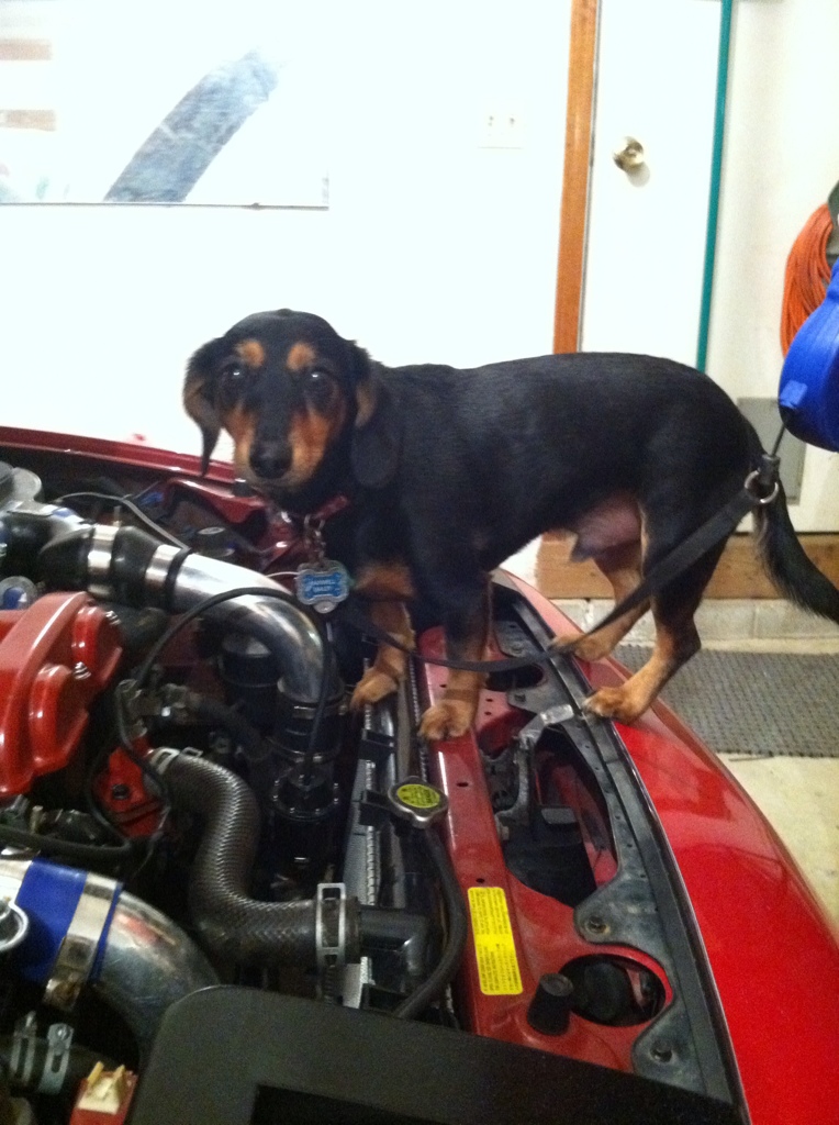 hes my garage buddy, theres a towel on the floor in there that he lays on while i work.