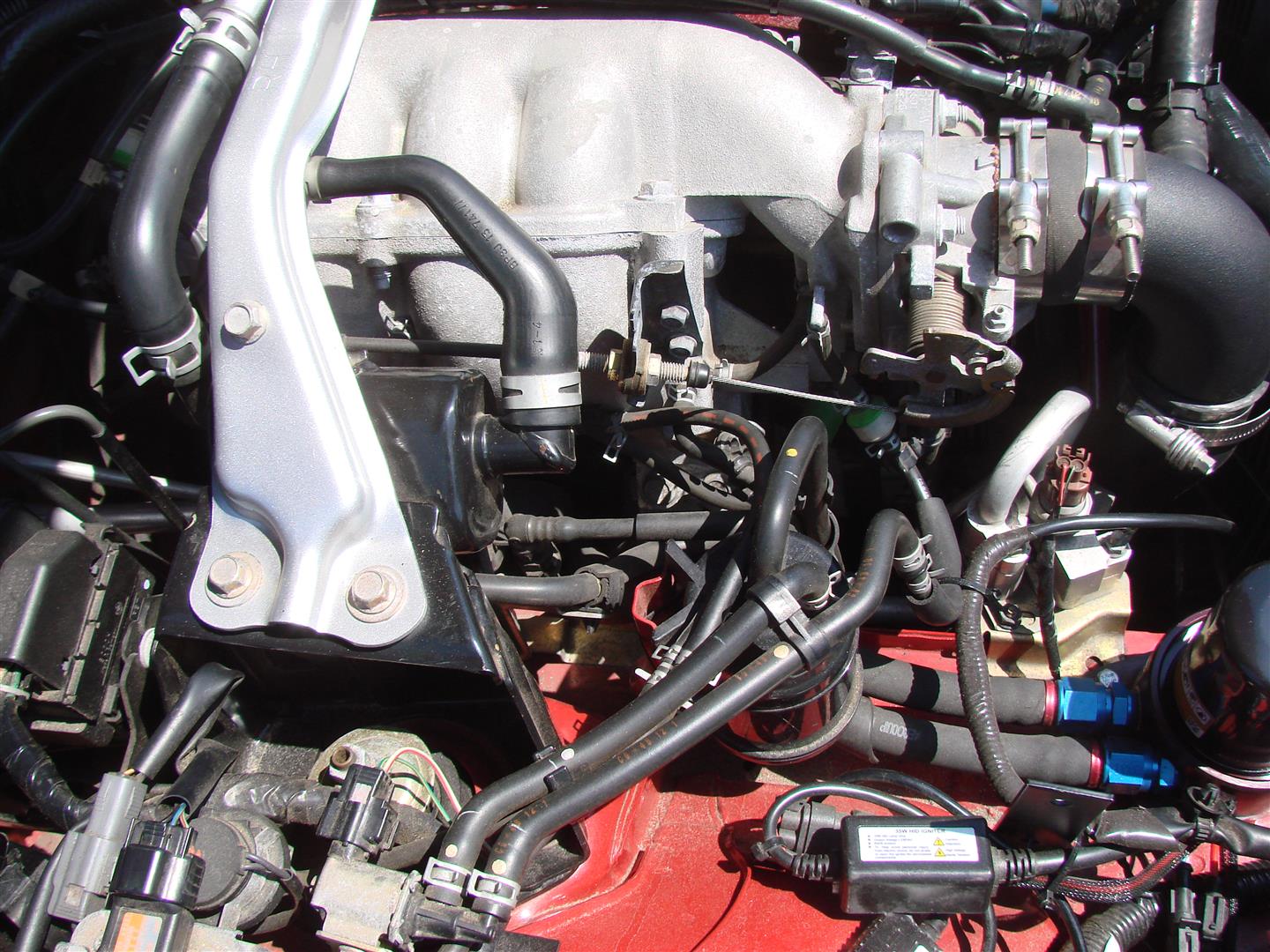 A relocated water expansion tank (green bottle in the bay) and a plastic windshield washer tank from an old japanese car in the cowl area. Also, an interesting mix of BEGI, Corksport and other modifications....all nicely done.