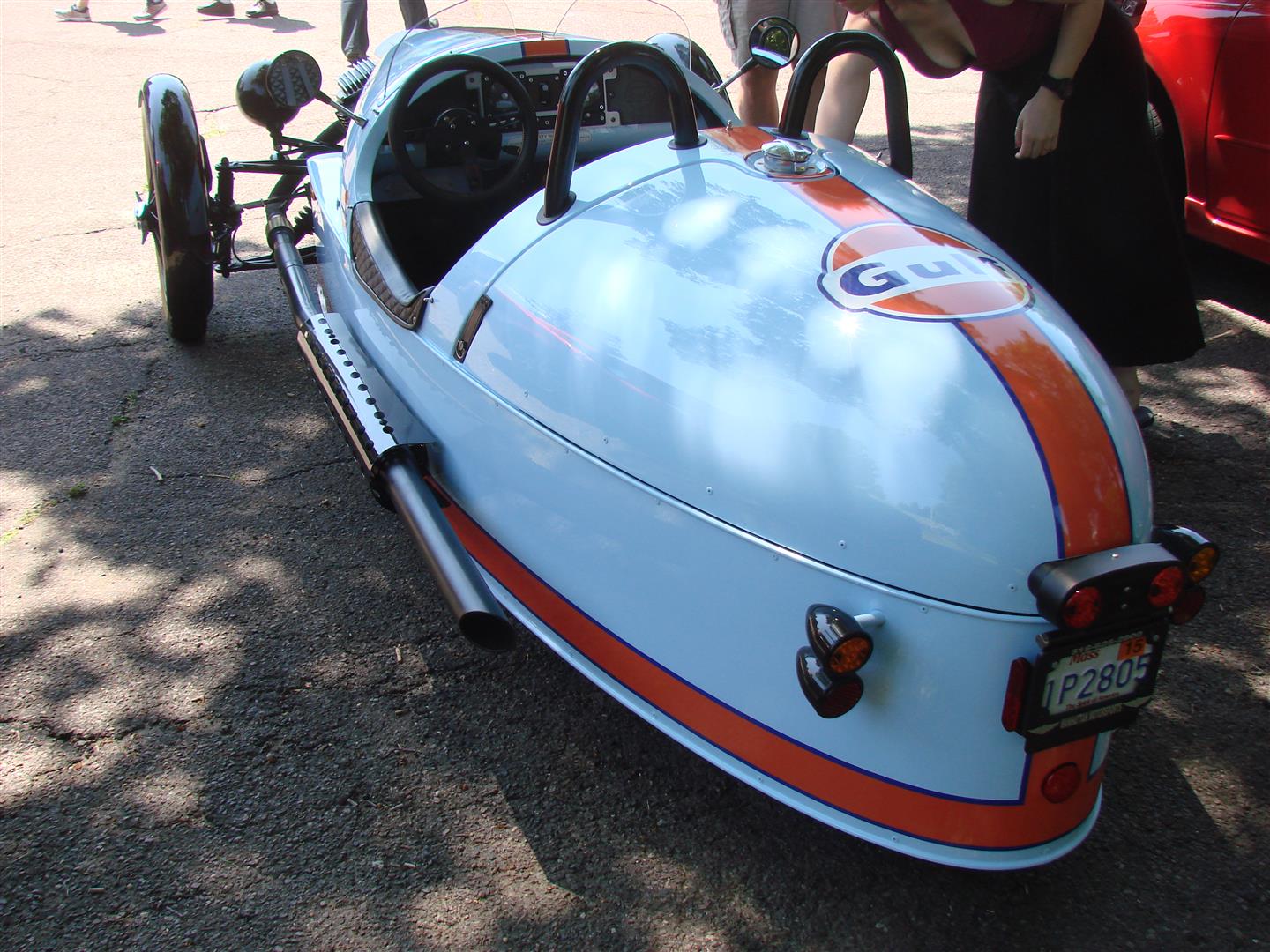 A beautiful Morgan Three Wheeler in gulf livery - Literally brand new with a wood chassis