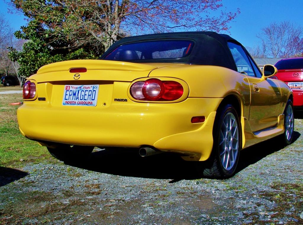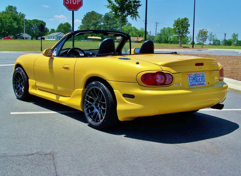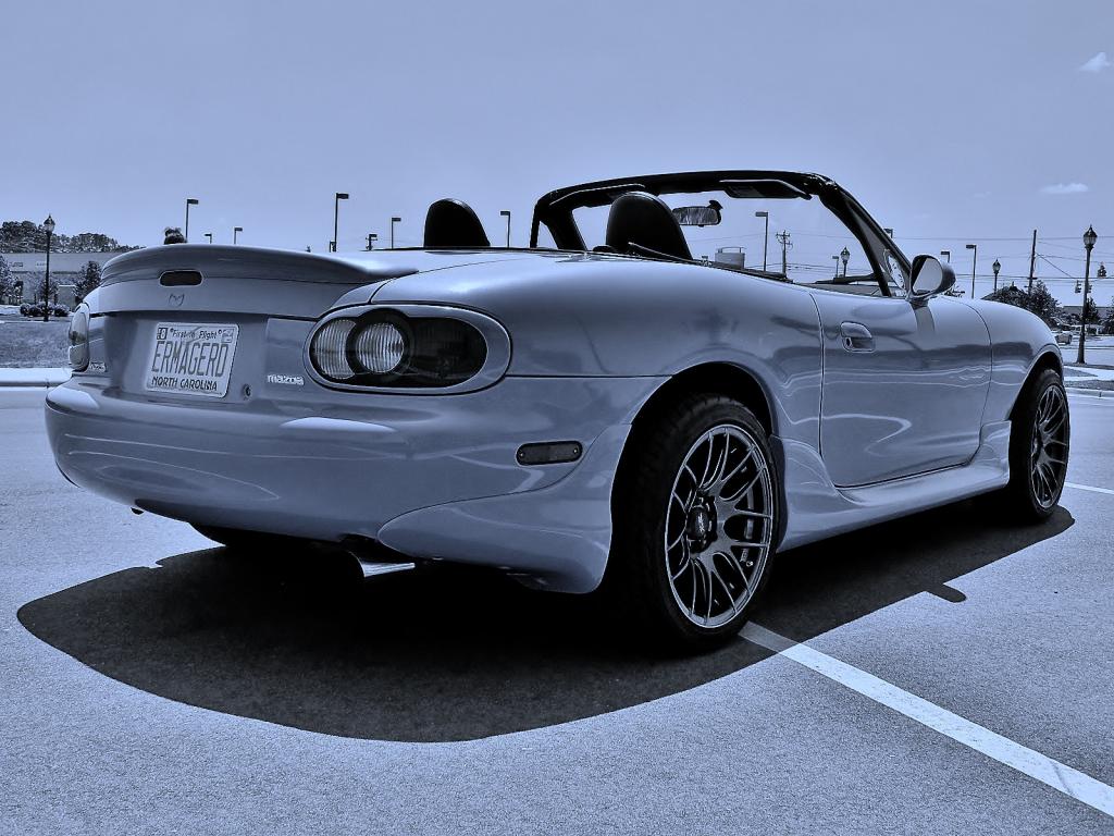 The miata is good, it has just under 45k now. I got an enthuza XR Lightweight exhaust on it to be more pleasing to my ears and picked up "me too" xxr wheels and put the stock ones in the shed. Also put on tinted marker lenses.