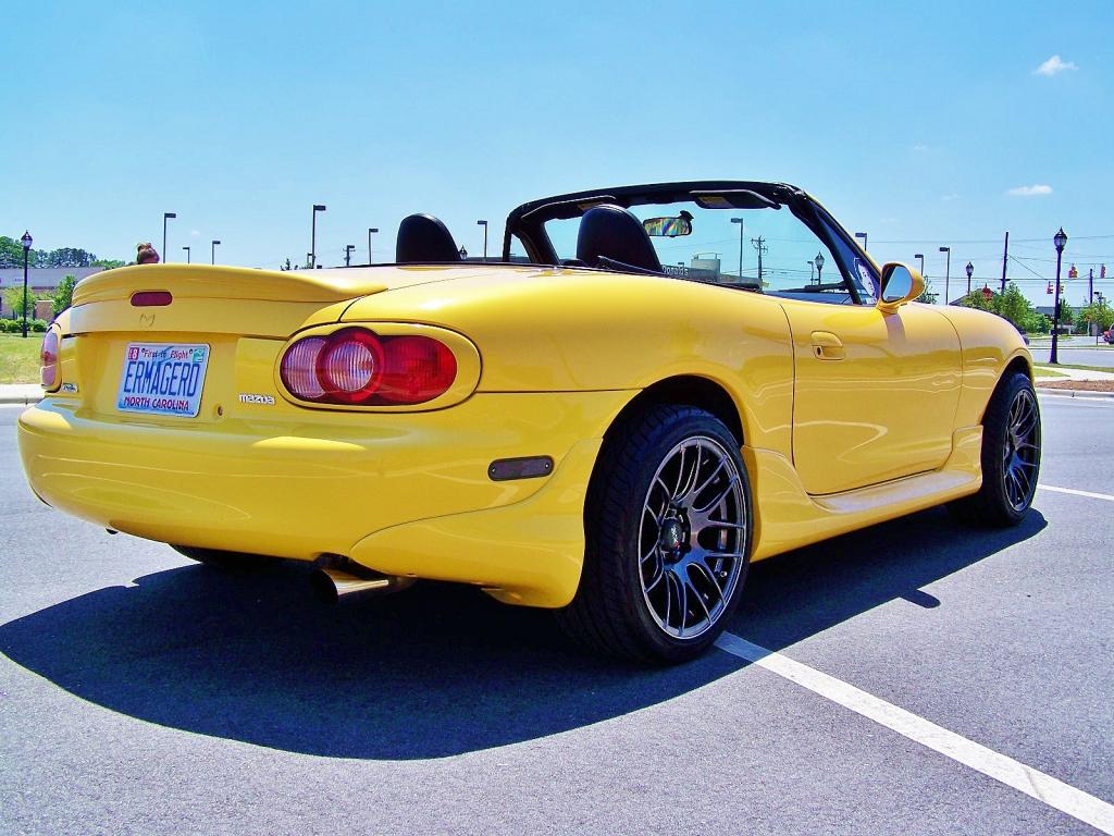 The miata is good, it has just under 45k now. I got an enthuza XR Lightweight exhaust on it to be more pleasing to my ears and picked up "me too" xxr wheels and put the stock ones in the shed. Also put on tinted marker lenses.