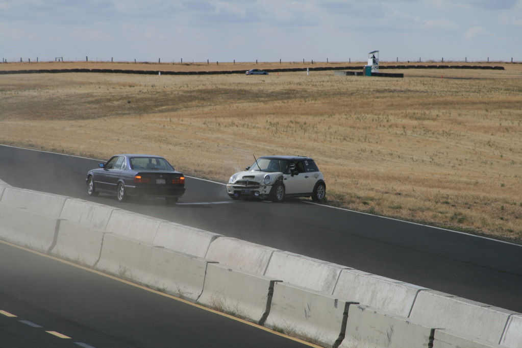 Turn leading on to the straight is a tricky one. Little off camber, and if you take too much curb it'll put you in a slide pointed towards a cement wall. I myself had a very close call on my first session. After that a guy told me a lot of cars have been lost there, it's the last corner you want to try and find time on, so I never pushed it again. 2nd session the mini wasn't able to save it. Dude was pretty cool, his biggest complaint was that he didn't have his gopro working to catch it. Apparently he has half a mini worth of parts in his garage. That's the right attitude to come to a track day with.