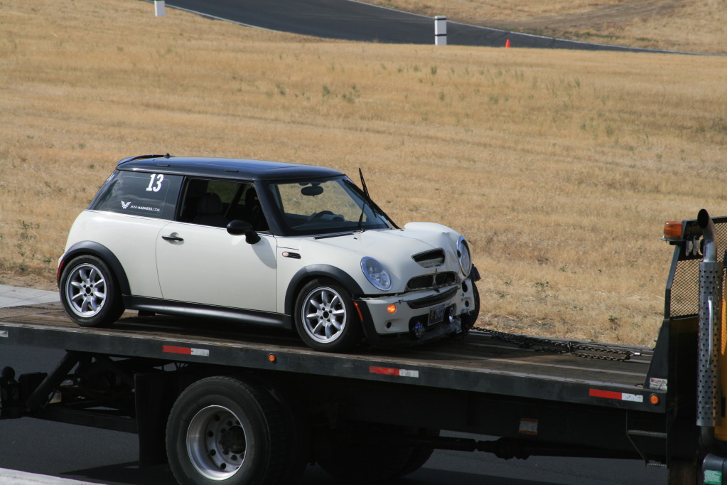 Turn leading on to the straight is a tricky one. Little off camber, and if you take too much curb it'll put you in a slide pointed towards a cement wall. I myself had a very close call on my first session. After that a guy told me a lot of cars have been lost there, it's the last corner you want to try and find time on, so I never pushed it again. 2nd session the mini wasn't able to save it. Dude was pretty cool, his biggest complaint was that he didn't have his gopro working to catch it. Apparently he has half a mini worth of parts in his garage. That's the right attitude to come to a track day with.