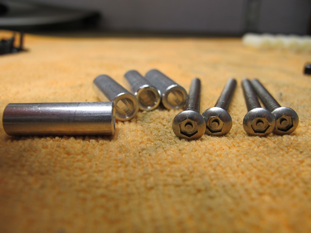 I selected some 1-inch aluminum spacers and special, longer screws to reach the new length requirement
