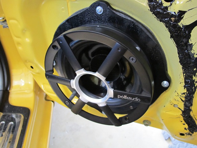 If I wanted to use my aftermarket grills, and I did because they match the rear speaker grills, there were only two options: screw them on top of the stock speaker grill or mount them the way I did here.