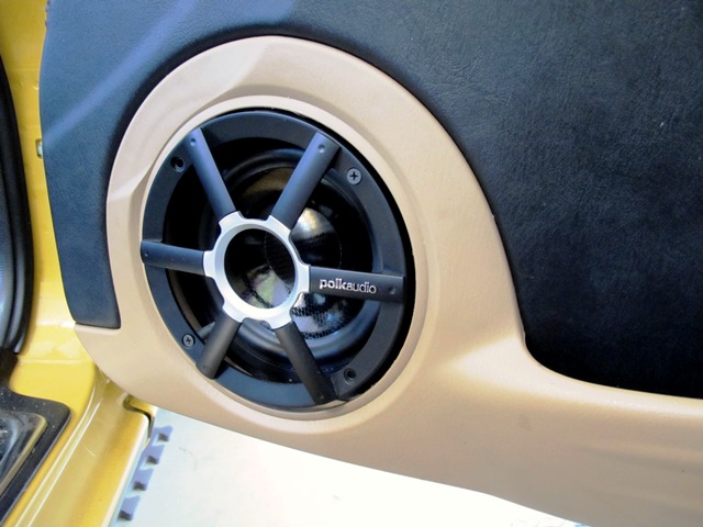 The aftermarket grill now floats independently of the door panel and looks great to me, especially after a little neffy on the tweeter panel earlier