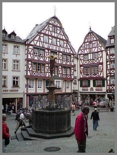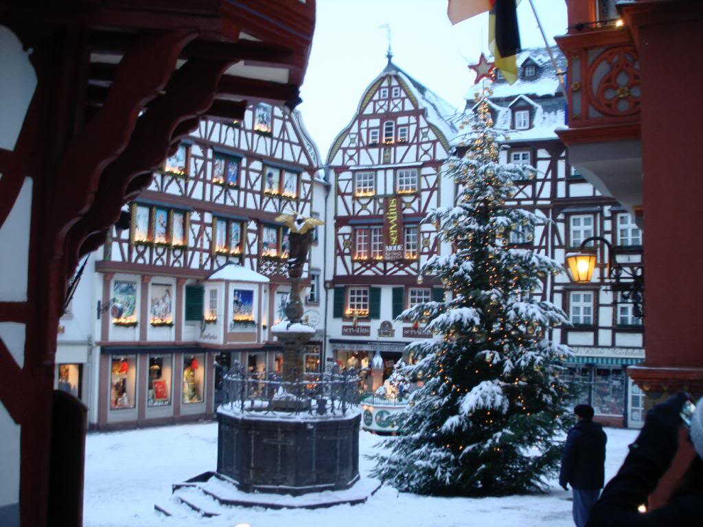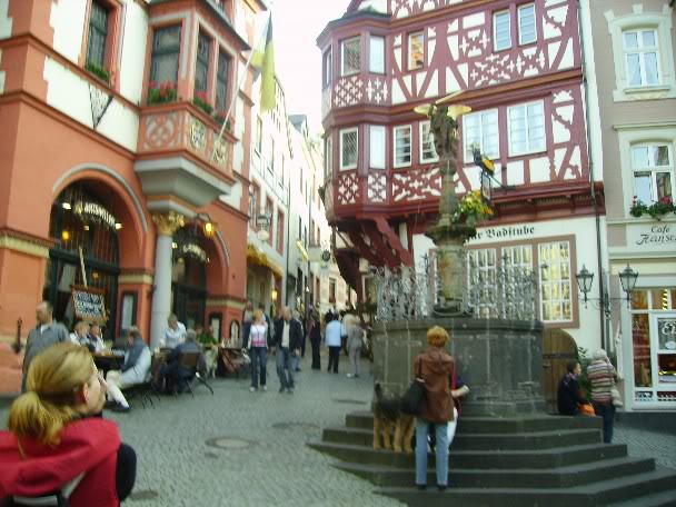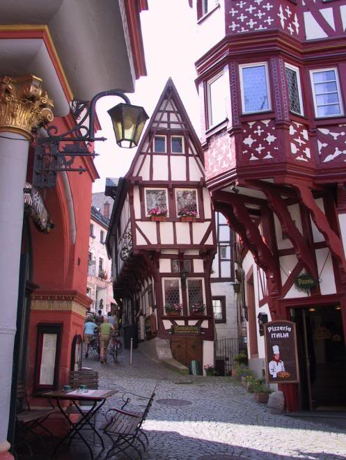 In the first pic, the little pizzaria on the right is hands down the best food I have ever had anywhere. And a lot of the houses in this part of town date back to the 1400's Most are still being used as little cafes and such. The whole town is down in a valley along the mosel river and surrounded by vineyards and has the ruins of a castle overlooking it.